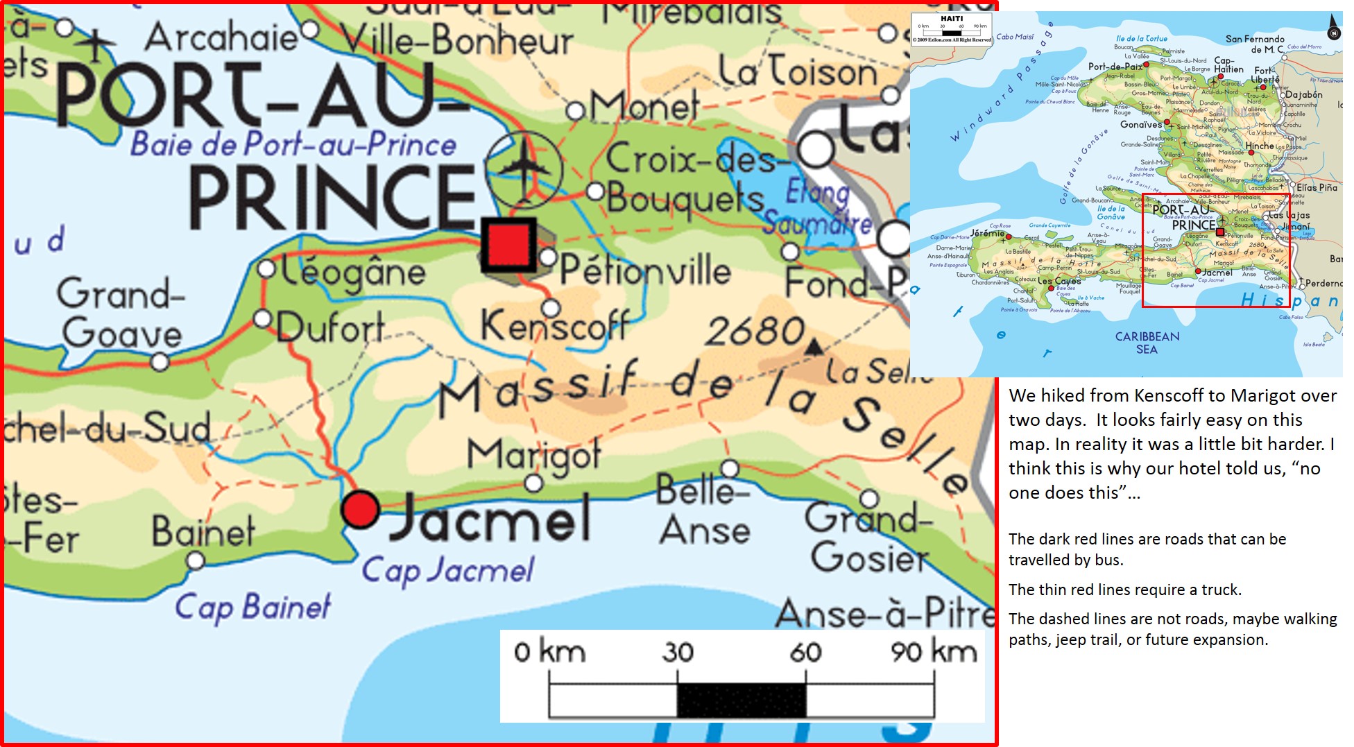 It was one of the most uncomfortable beds I could have imagined. It turns out his bed was nothing more than a sheet of wood with his limited clothes folded on it, and then a sheet laid over the top. It was maybe the size of a twin bed, and my friend and I attempted to share the space by request of the host. However, as uncomfortable as it was, we could not complain… Both the host and our guide slept sitting upright on the two wooden kitchen chairs that made up the rest of his furnishings. The next morning we would finish our hike down to Marigot, and then catch a tap-tap to small resort in Cap Jacmel along the Caribbean Sea.